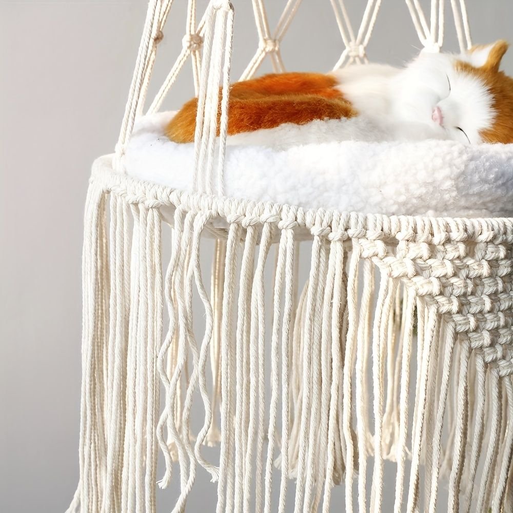Home > 1pc Hand-Woven Cat Nest Hammock Basket - Comfortable and Stylish Wall Hanging Pet Bed for Small Dogs and Cats