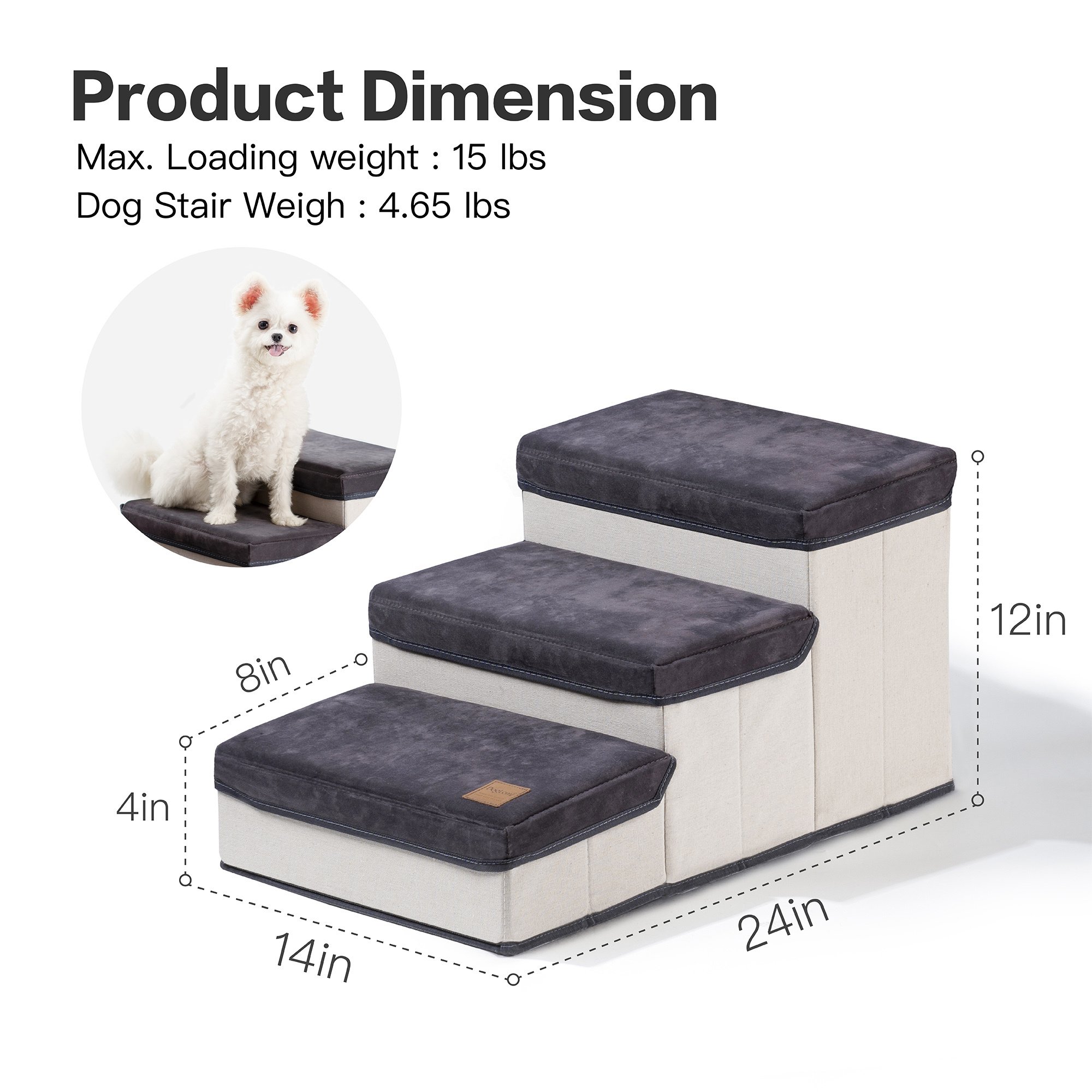 3 Tiers Foldable Dog Stairs,Pet Steps for Small to Medium Dogs,Dog Ladder Storage Stepper for Bed Sofa Couch