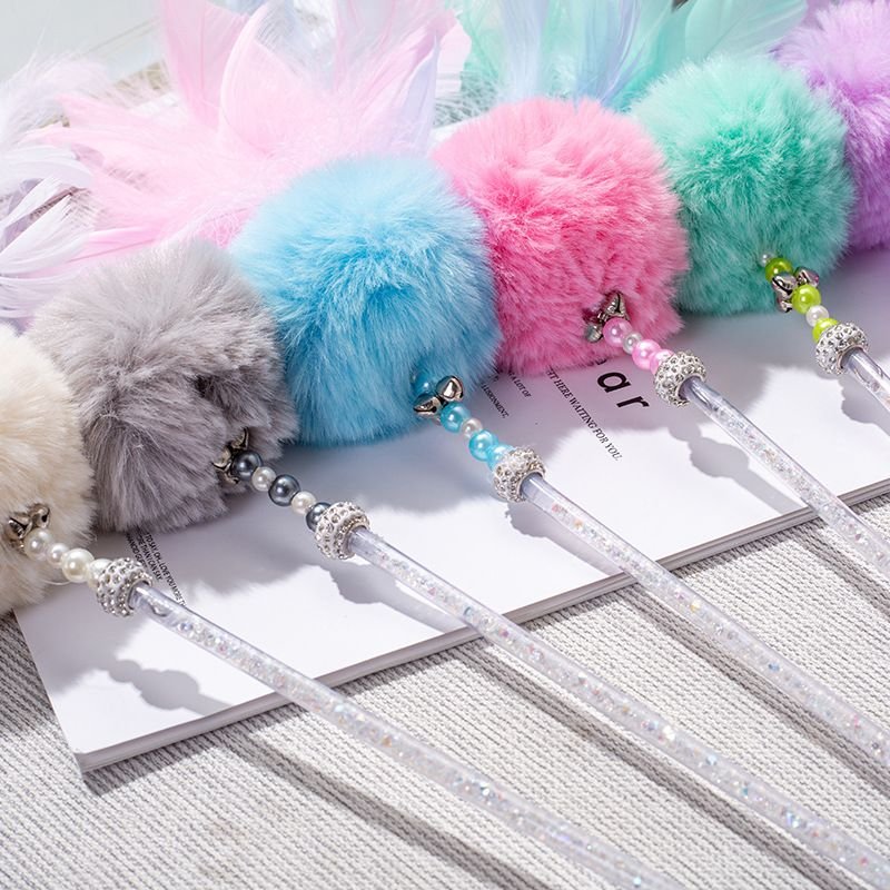 Cat Teaser Fluffyball Feather Wand Stick Funny Interactive Pet Cat Toys Pet Kitten Play Interactive Toy
