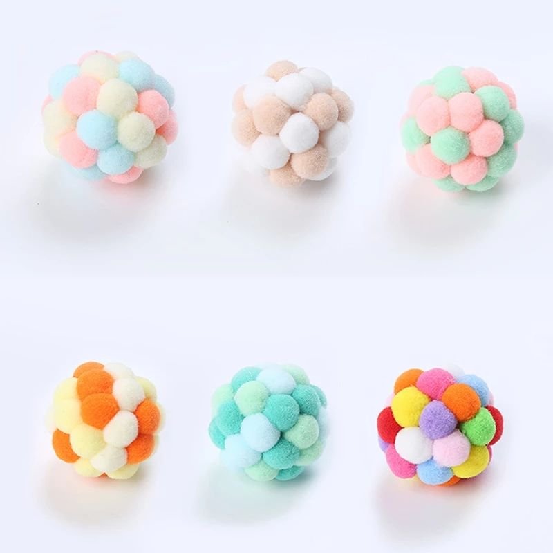 2.Multiple colored plush balls with bells sounding, attract cats attention.