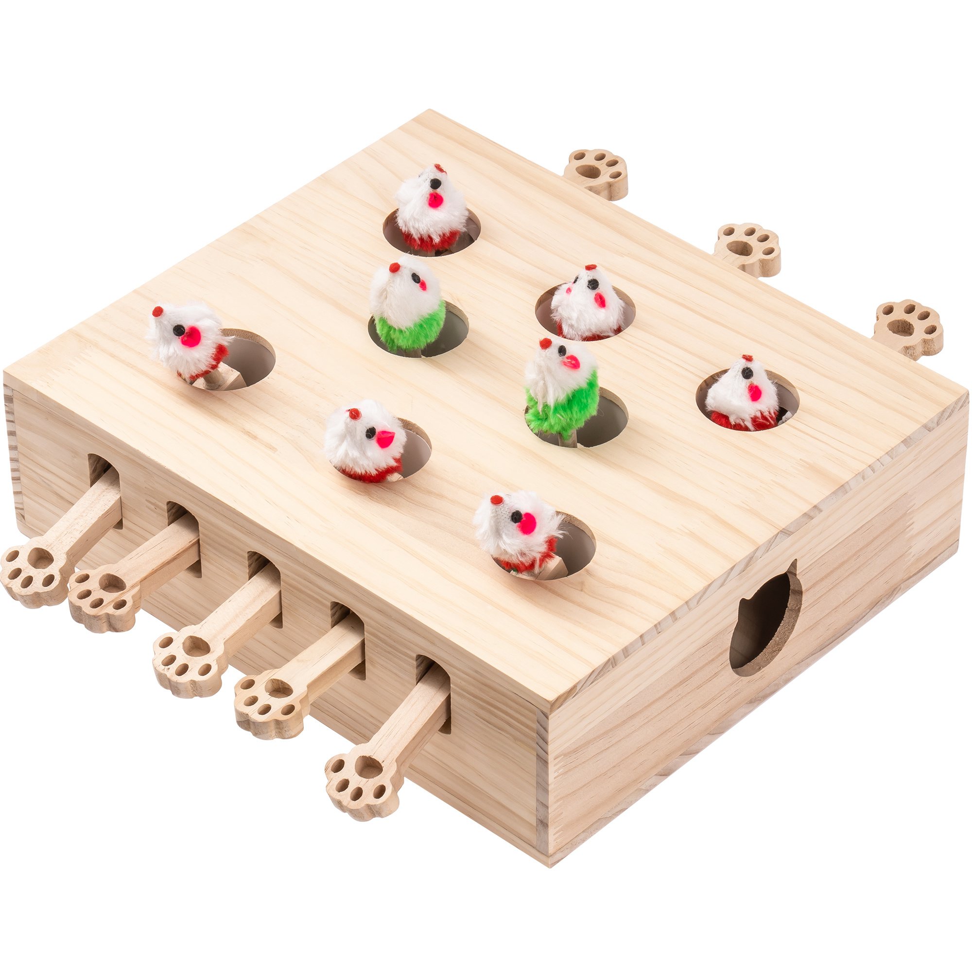 Cat Toys Interactive Whack-a-mole Solid Wood Toysfor Indoor Cats Kitten Catch Mice GameCharacteristics:Product Name:Interactive ToyBrand: MEWOOFUNMaterial: Wood; PlasticFinished Size:14.62 x 12.87 x 3.7 inchProductFeature: