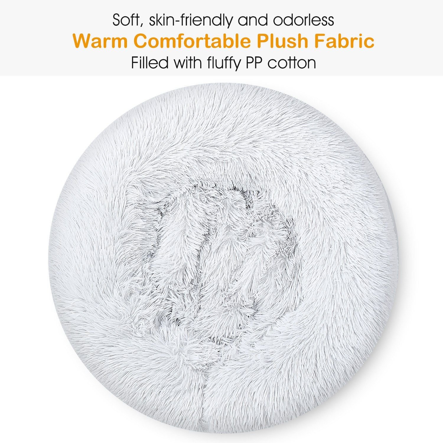 **SOFT WARM PLUSH BED*:Made from high-grade plush materials with fluffy PP cotton filling,our pet bed is soft,skin-friendly and odorless to keep your pet warm and comfortable while lounging,sitting,slouching or lying.