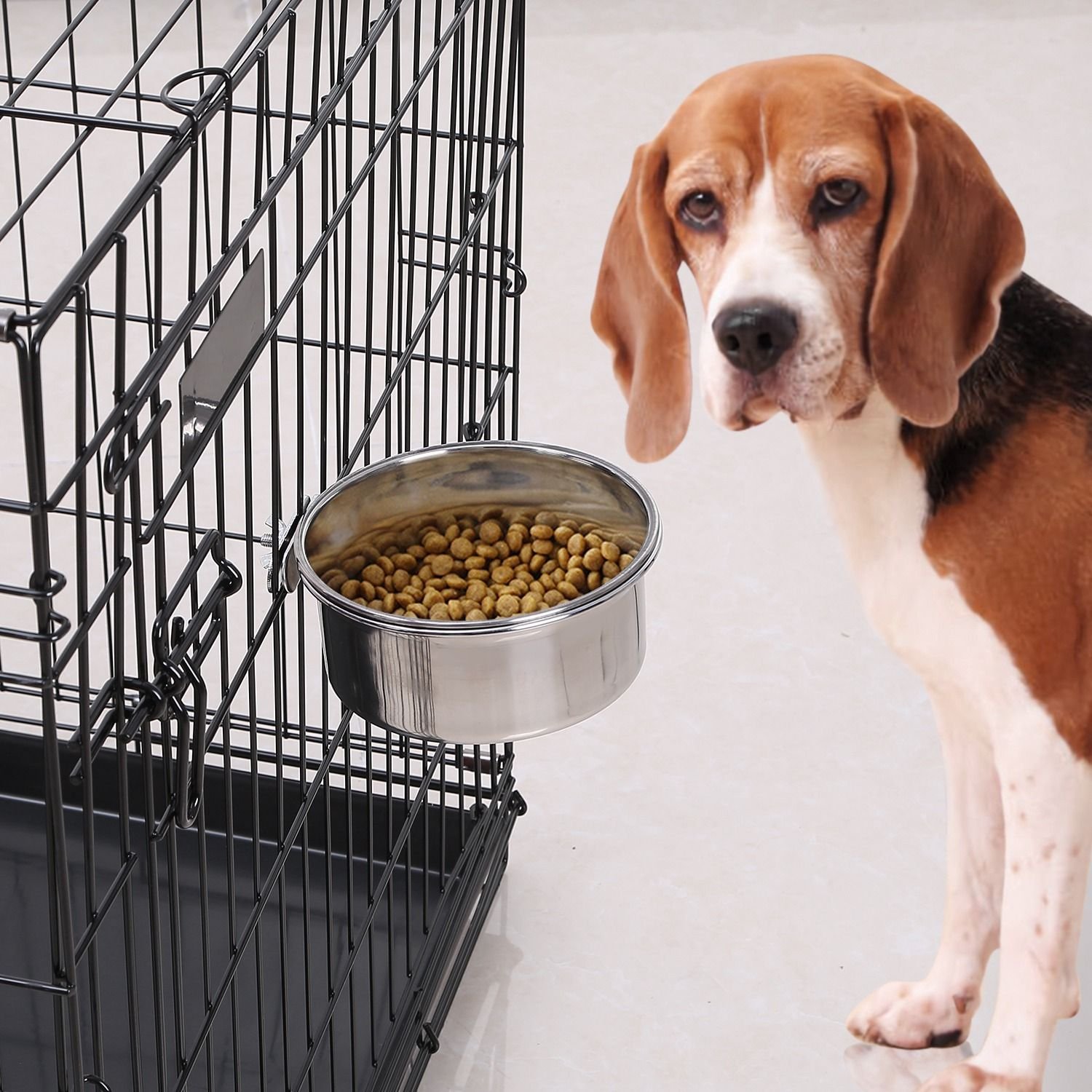 **EASY TO USE AND CLEAN*:The crate dog bowl is removable for easy cleaning; filling up with food or removal. Simply release the clamp holder; and remove the stainless steel bowl for cleaning.